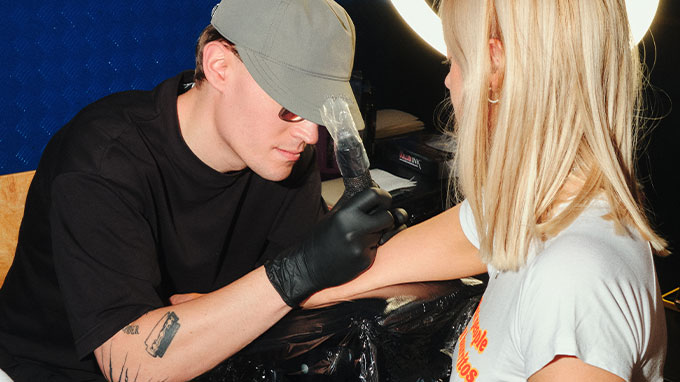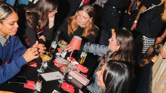 We transformed downstairs into a winter wonderland-meets-burrito-bar: soft textures and warm lighting, with plenty of cosy corners for chess and cards. Plus a pop-up tattoo station by OnebyOne, where brave guests could get inked from a set of Tortilla-inspired designs, like chillis, tacos, and margs â FOR REAL. Upstairs in the kitchen, DJs Clara Rosa and The Flag Twins kept the energy going. And of course we had a photobooth for the guests to model their tees and new tats.