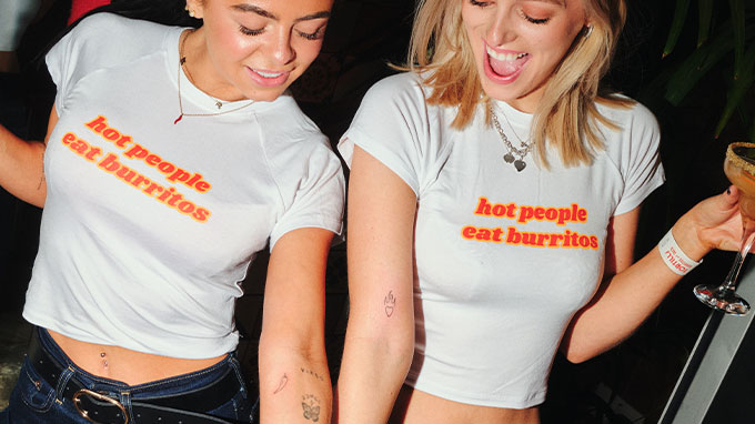 We teamed up with Ruby Loot to drop limited-edition slogan baby tees. Guests were invited to rock the collab, pairing the tees with fur coats and winter layers. Urging them to âCatch flavours, not feelingsâ and affirmed what we already knew: 'Hot people eat burritos'